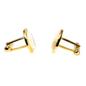 The cufflinks measure 23 mm or 0.9 inches in width by 17 mm or 0.7 inches in height. The tie pin measures 18 mm or 0.7 inches in height by 13 mm or half an inch in width.