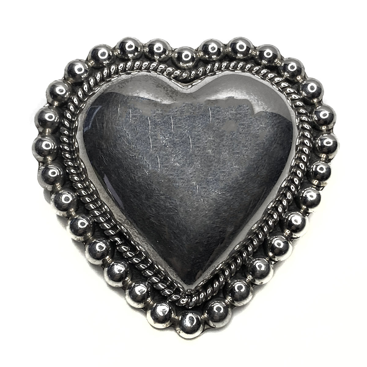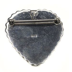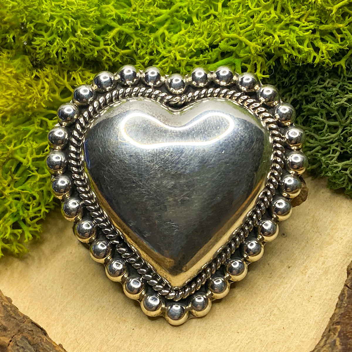 This Silver Heart Pendant can also be used as a pin. This adds great versatility to suit your mood or occasion. It's a large piece with a real air of Victorian romance to it, thanks to its ornate framed edge. As a necklace, it would look stunning on a very long chain, perhaps as part of a layered look.