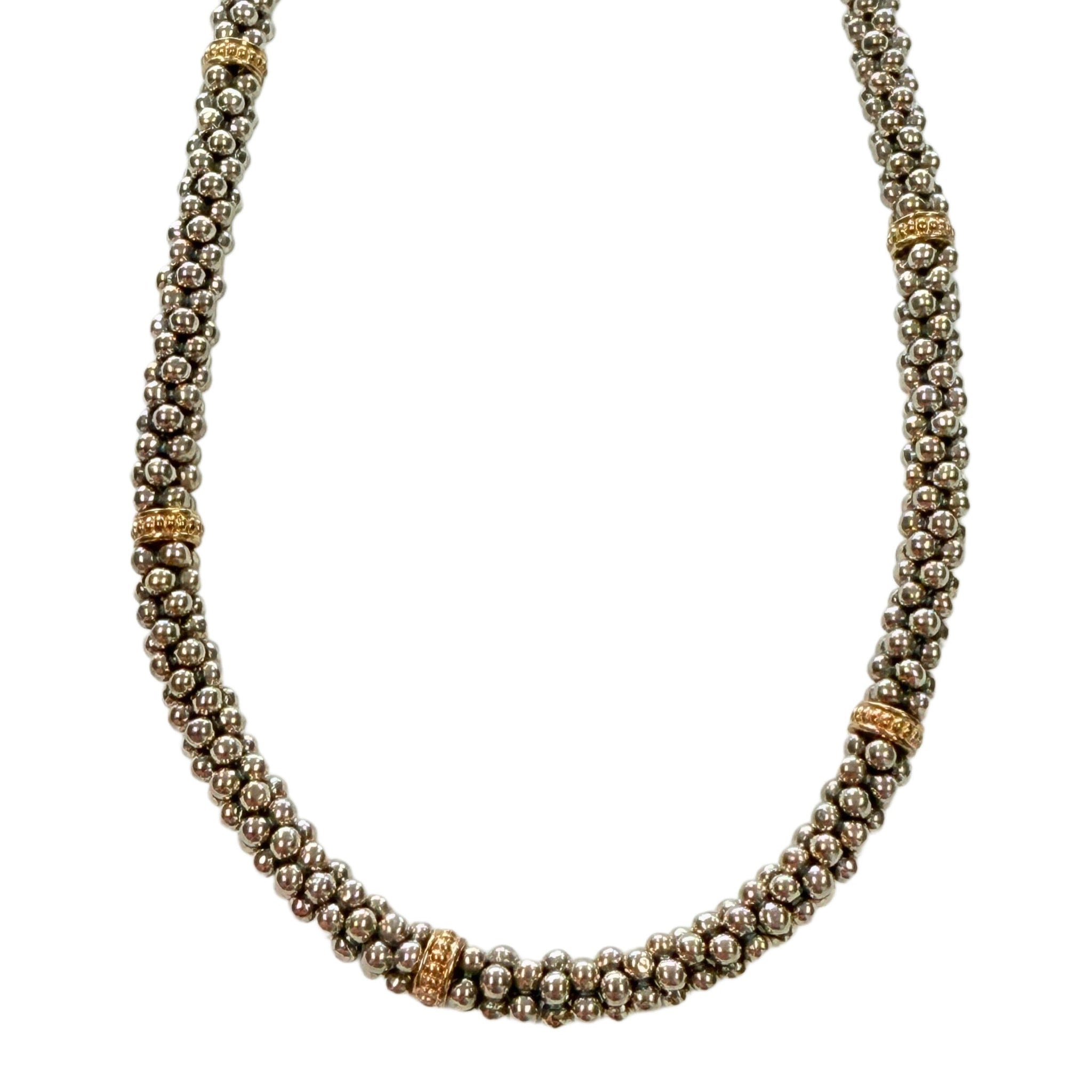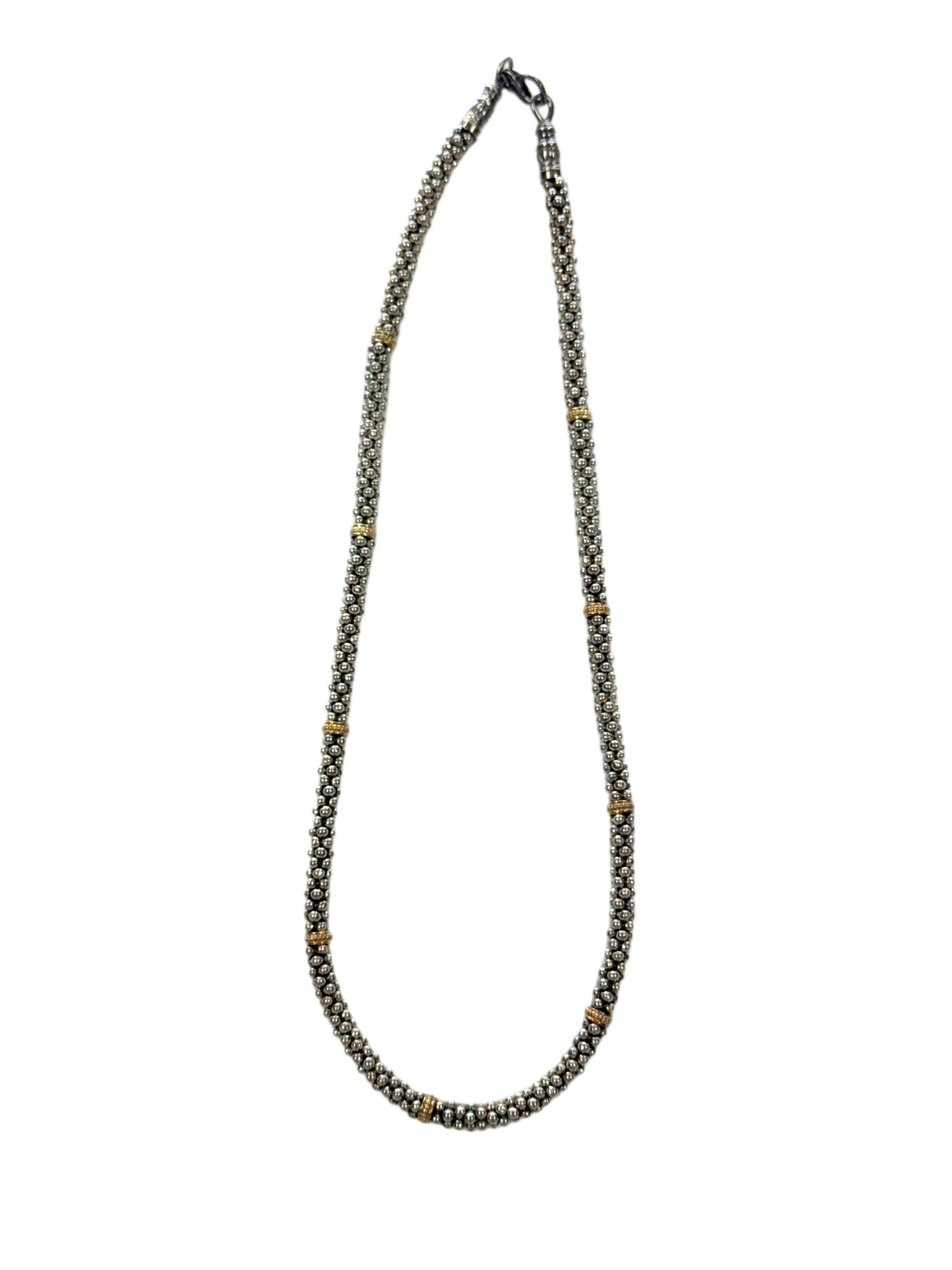 This Lagos Silver & 18k Caviar Beaded Necklace is a stunning, on trend piece. It's eye catching thanks to not only the texture but the mix of metal tones.