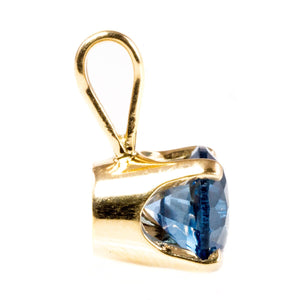 This 14 k Gold & Blue Topaz Pendant is such a pretty, eye catching piece. The focus is entirely on the blue topaz stone. These stones have a spectrum of acceptable shades and this particular example is London Blue, meaning you get a smoky feel to the stone. It's a very distinctive, unusual and much prized shade.