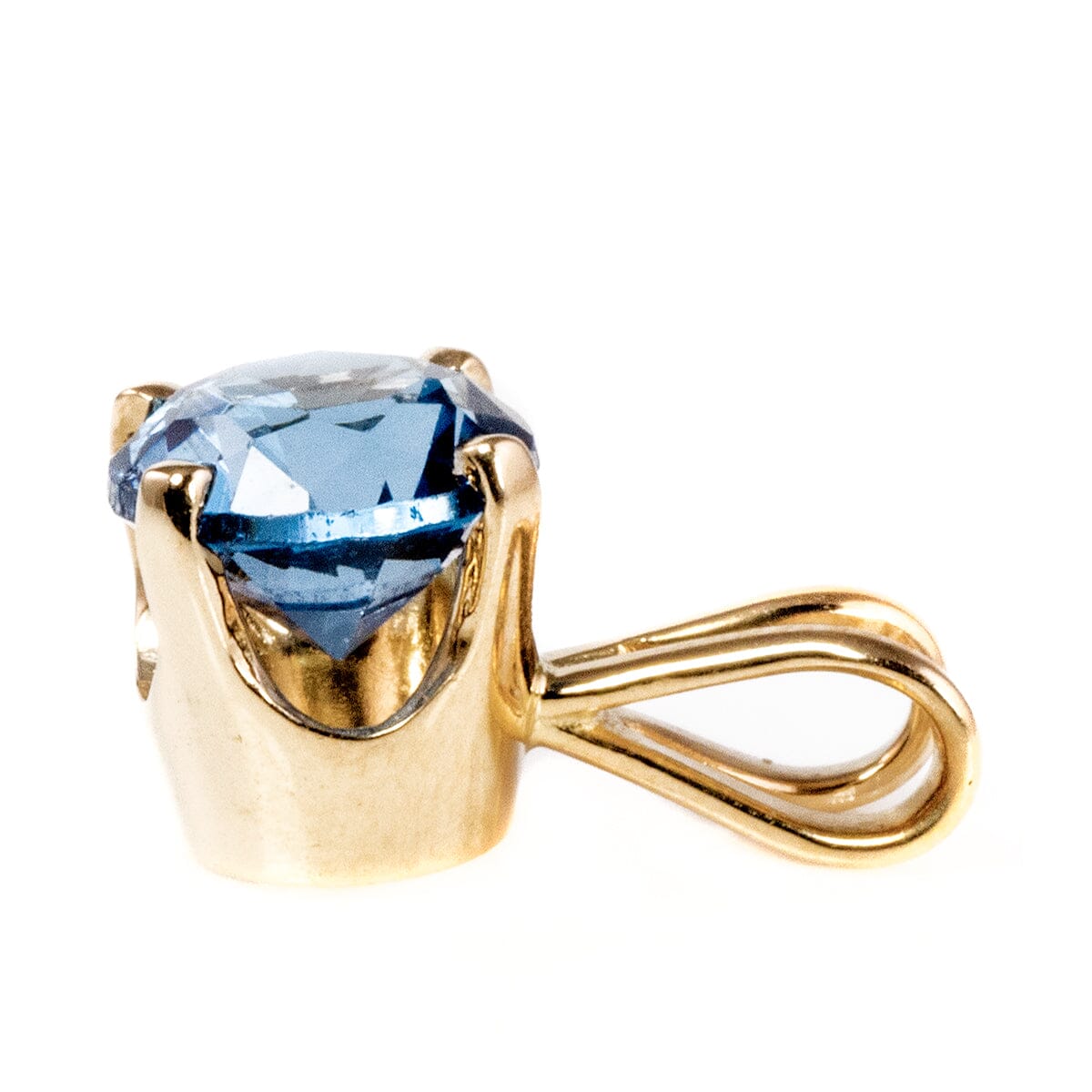 The setting of the pendant is 14 k yellow gold and is kept subtle and minimal to allow the stone to take center stage. That said there is a lovely contrast created between the warmth of the gold and the cooler tones of the topaz.