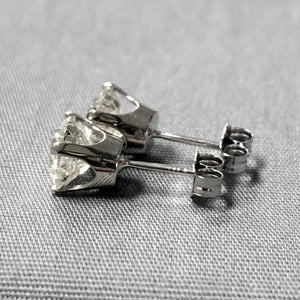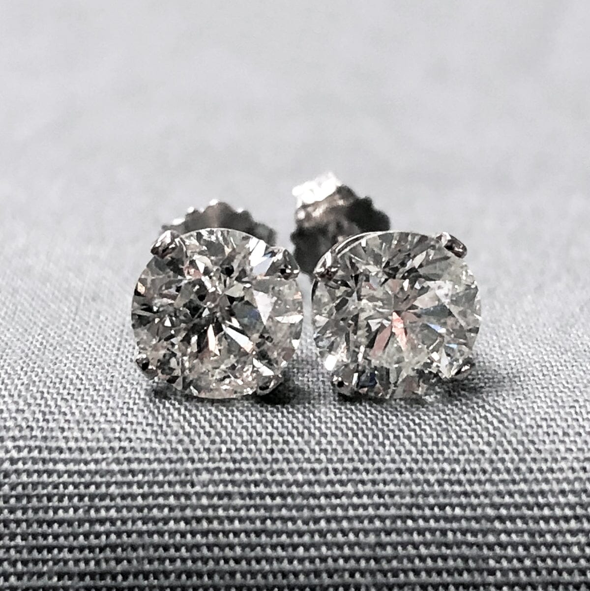 These are four prong settings with a total weight of 2 carats (or 1 carat per stud.) The clarity of the stones is I1-I2 and they are J/K in color.