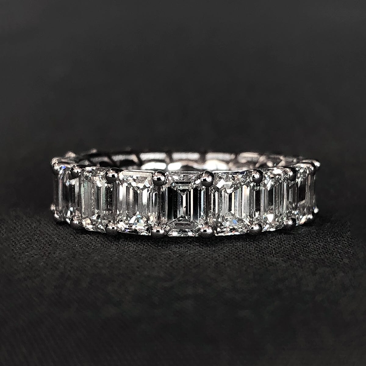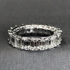 This 14 k White Gold Diamond Eternity Ring is a timeless, stunning ring. This particular example has a vintage feel to it, thanks to the use of emerald cut diamonds. It sets it apart from the vast majority of eternity rings while still giving you an elegant ring you'll enjoy for a lifetime.