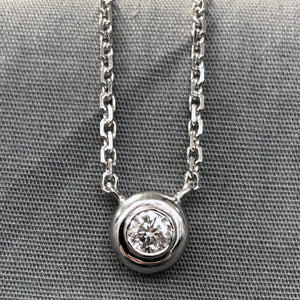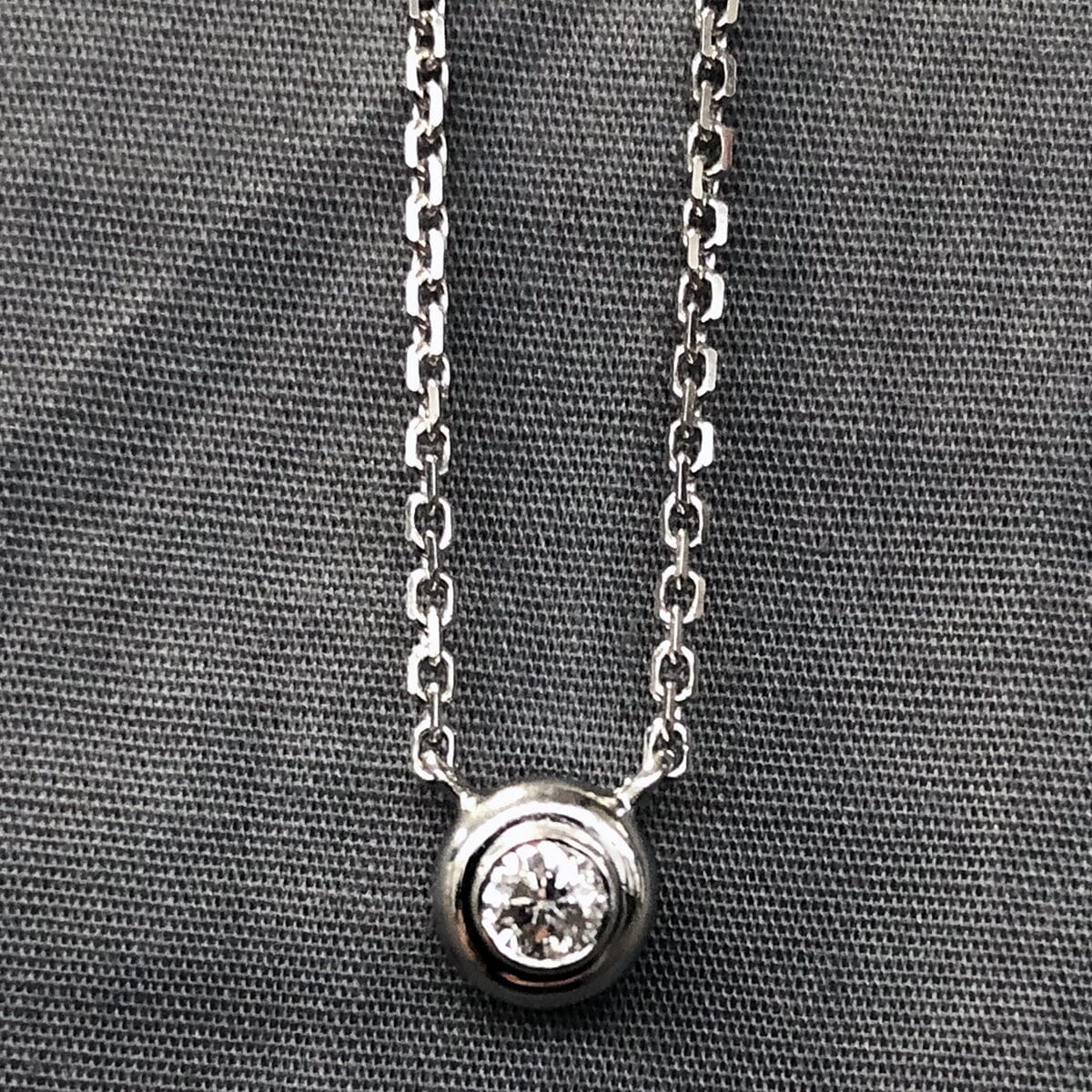 This 14 k White Gold Diamond Necklace is a chic, contemporary piece. It taps into the huge trend for minimalistic, delicate jewelry pieces, designed to be worn alone or layered together for a more dramatic look.