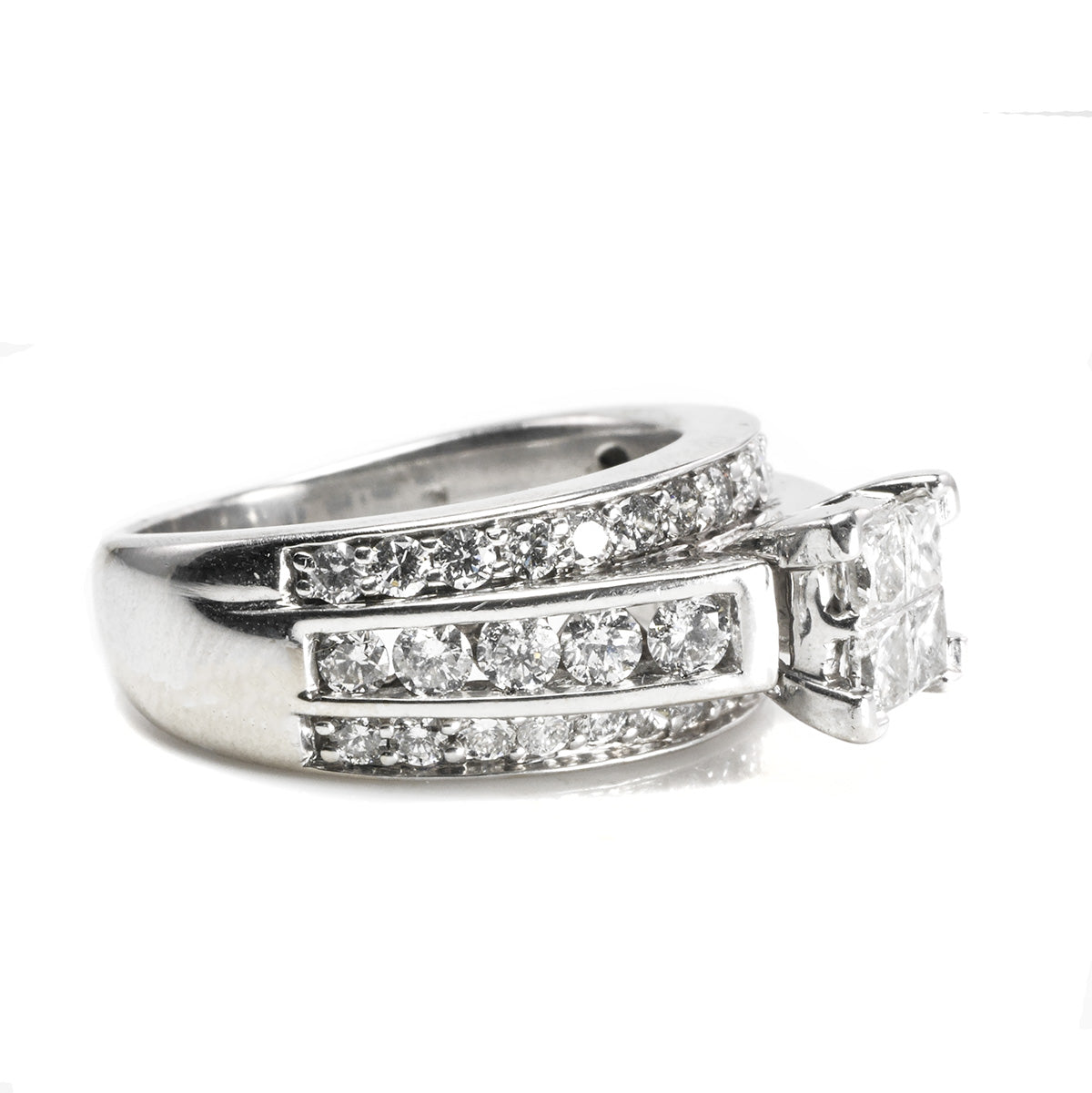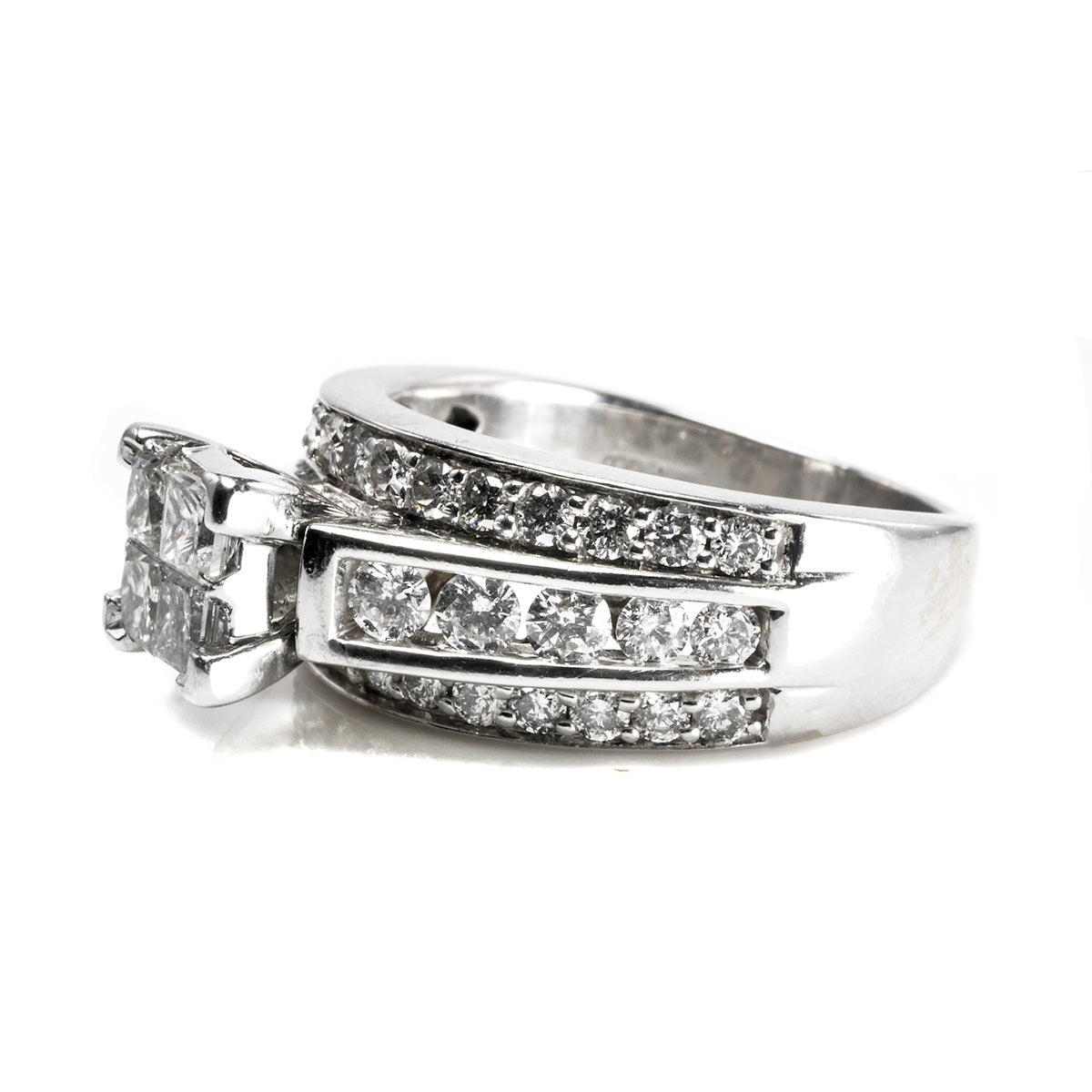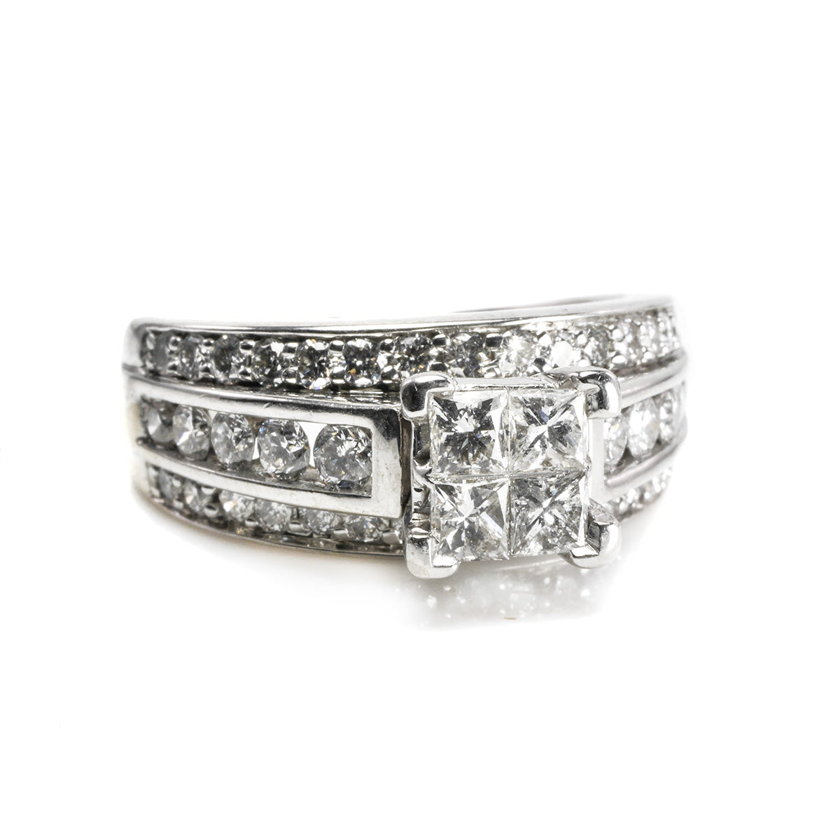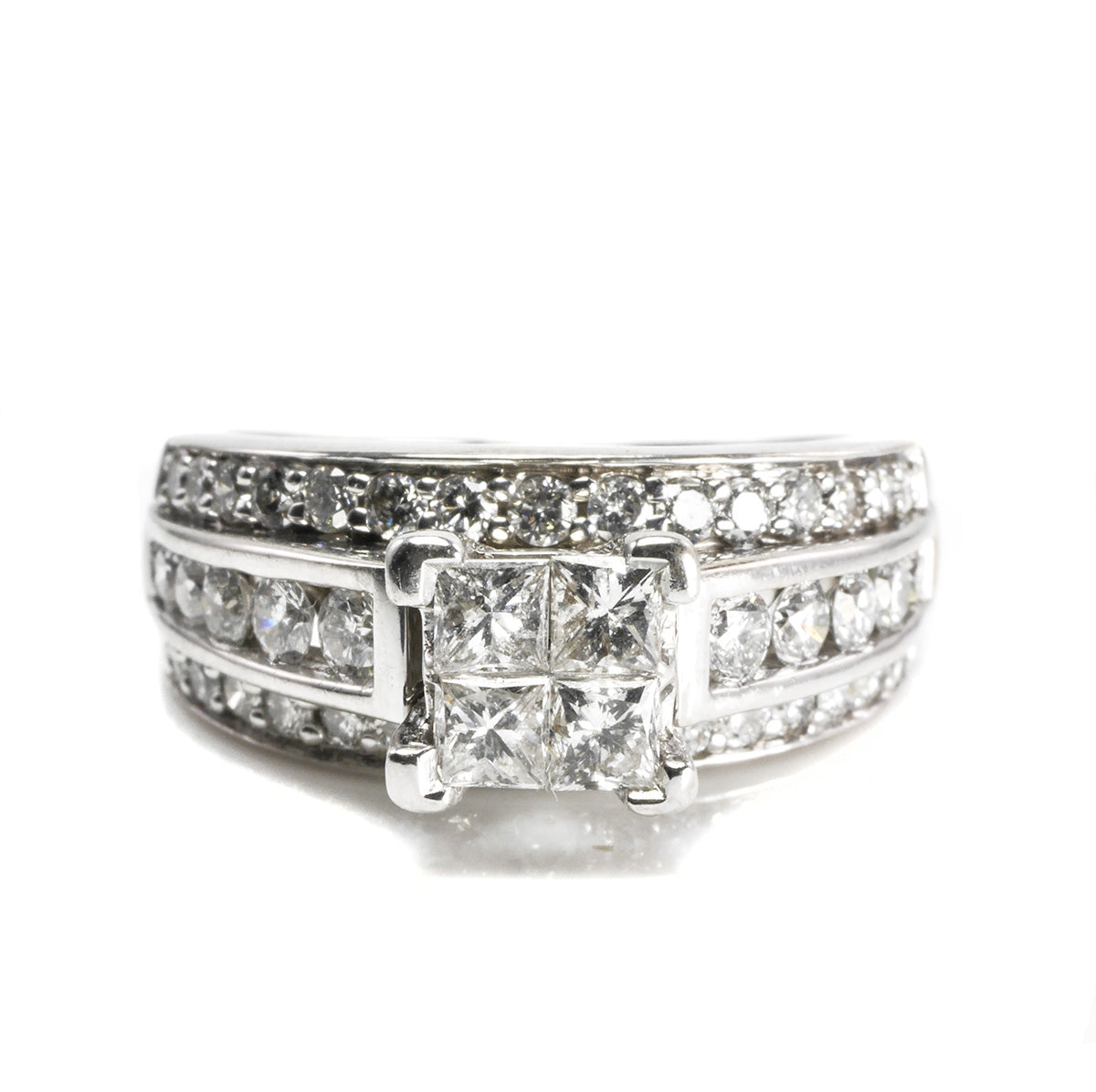 This 14 k White Gold Princess Diamond Ring is spectacular! This triple band style ring delivers dazzling amounts of sparkle for when you need something very special.