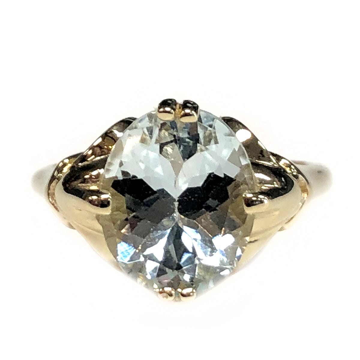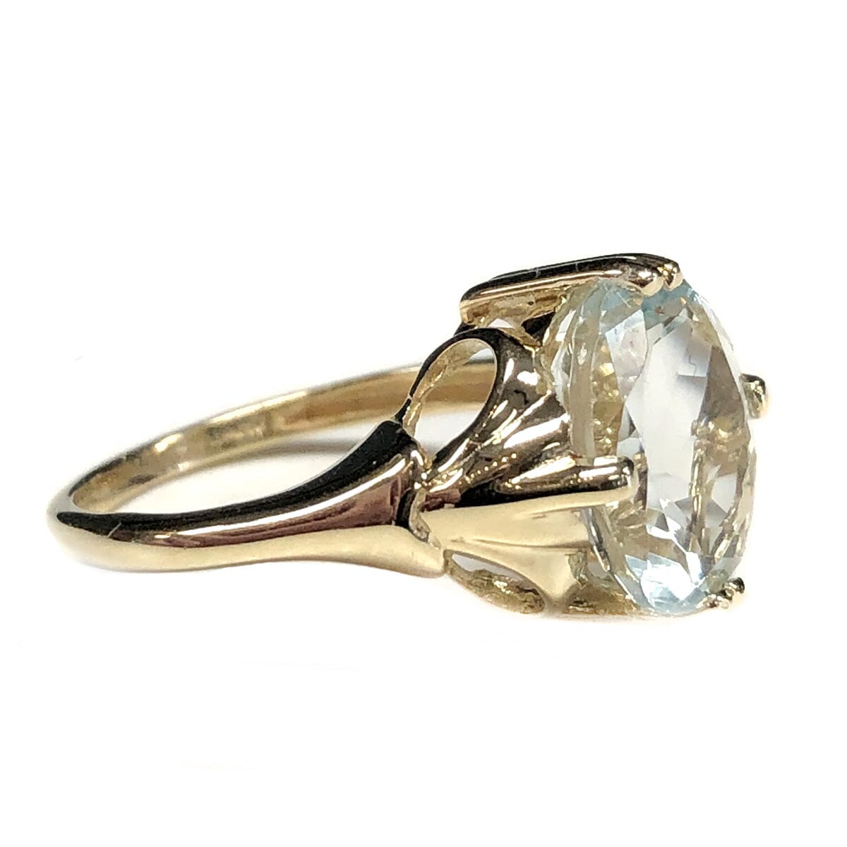 The ring itself is a size 5 1/2 and measures 1/2 an inch in height as it sits on the finger. The aquamarine gemstone measures 11 mm in height by 9 mm in width. Meanwhile the ring weighs 3 grams.