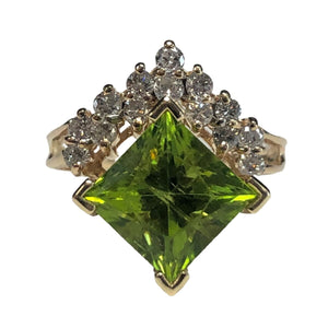 This 14k Gold Peridot & Diamond Ring is ideal for those seeking something striking and unusual.