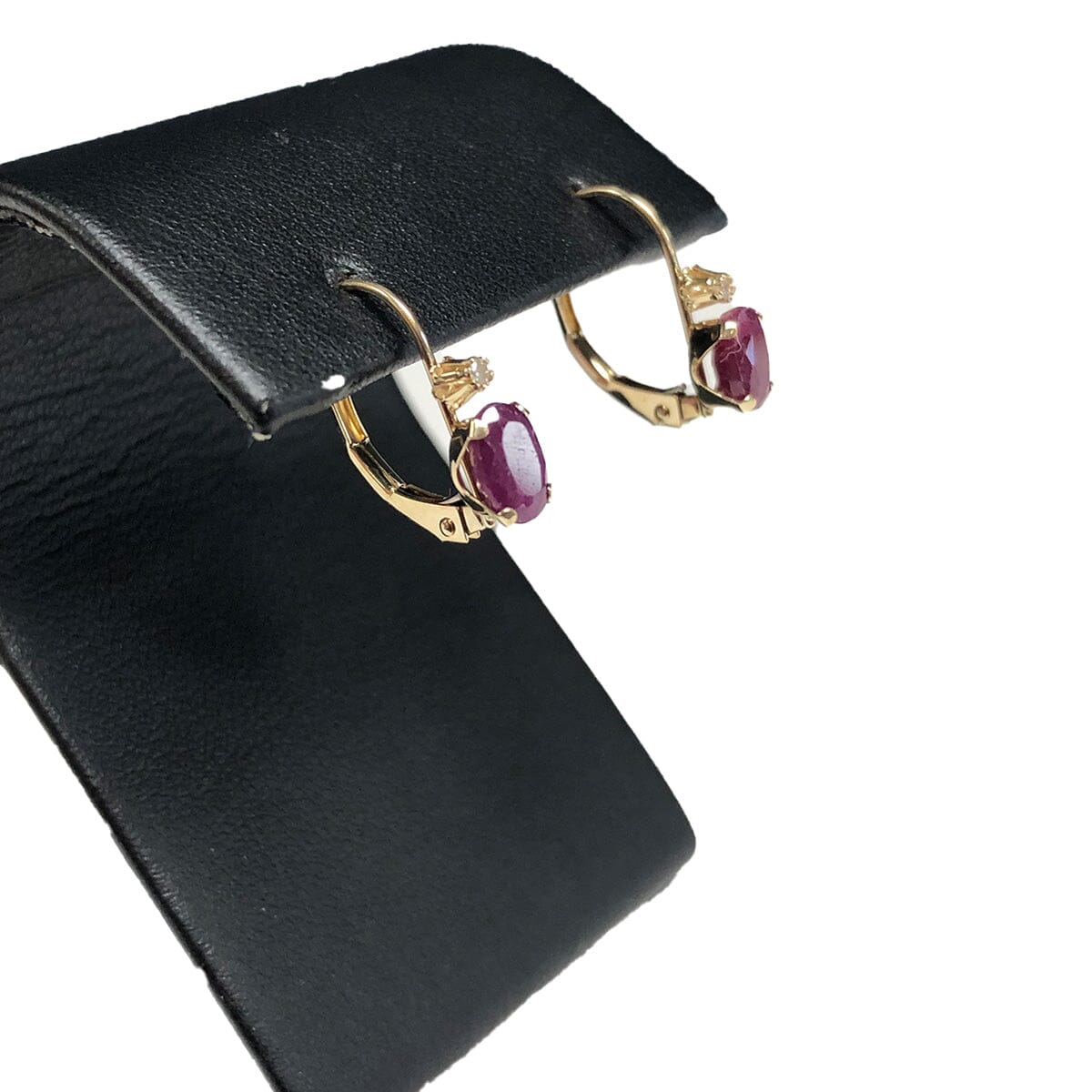 These earrings boast approximately 1 carat total ruby weight. They measure 1/2 an inch and weigh 0.9 grams.