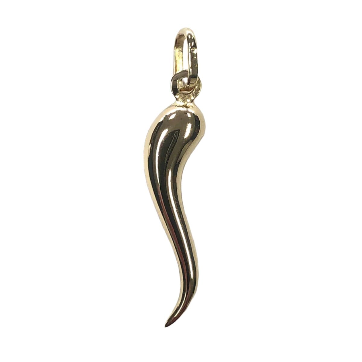 This 18k Yellow Gold Cornicello Pendant is a simple example of this classic pendant. Cornicelli are styled to be reminiscent of animal horns and can vary from quite simple, to more elaborate versions. This is subtle with the hallmark as its only visible marking. This makes this piece very gender neutral.