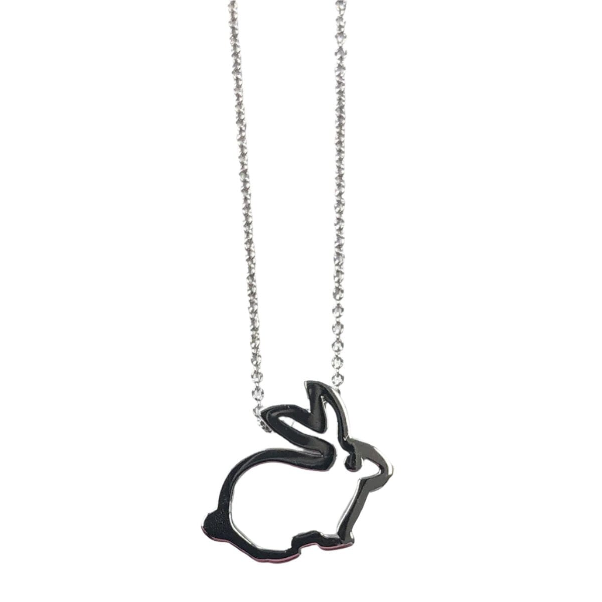 The chain is adjustable from 16 to 18 inches, offering a lot of versatility. The chain has a thickness of 0.75 mm. The bunny pendant measures 1/2 an inch by 5/8 of an inch. Finally the pendant and chain combined weighs 2.6 grams.