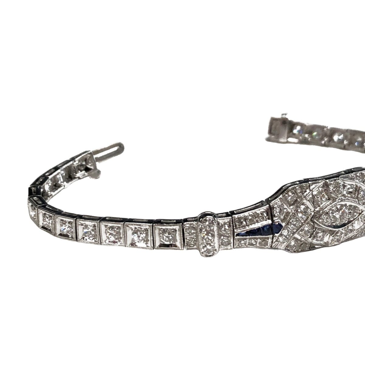 This Art Deco Platinum Diamond & Sapphire Bracelet is nothing short of spectacular. Sporadically pieces come along that are breathtaking and this definitely qualifies.