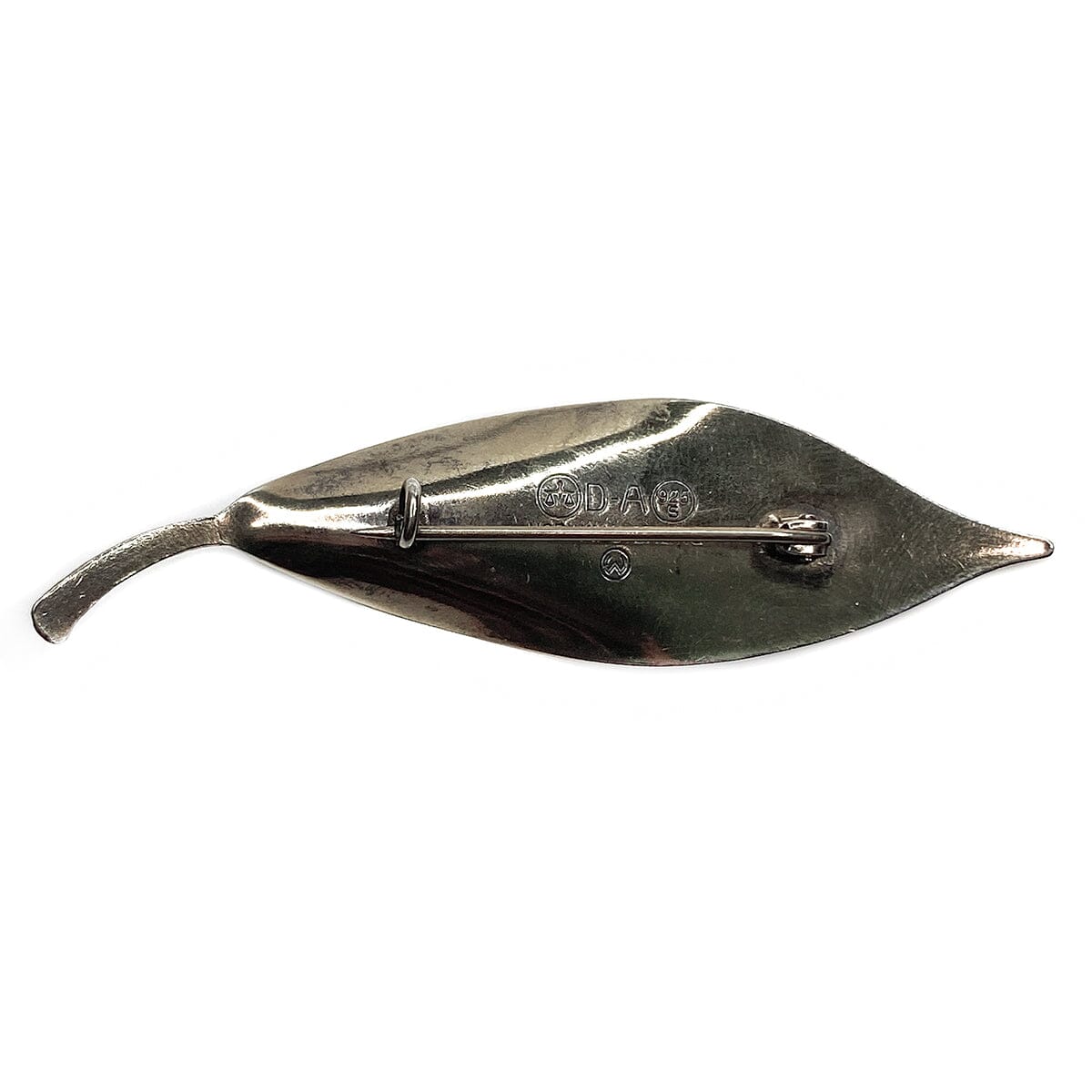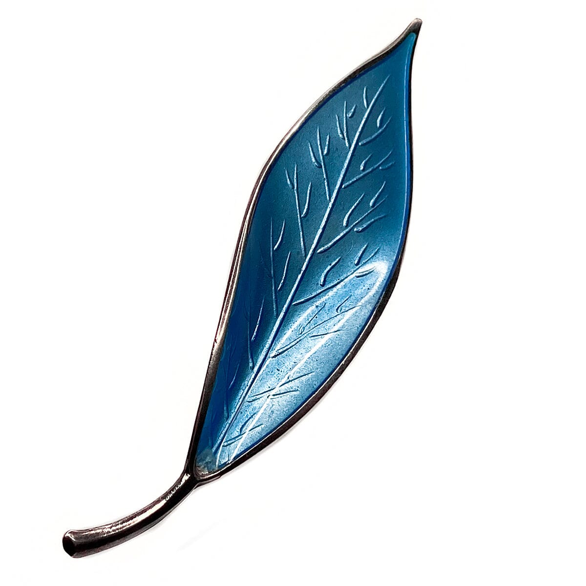 This David Andersen Silver Blue Leaf Brooch is a must have for nature lovers or of course, fans of this Norwegian designers work. David Andersen was a renowned Norwegian design house best known for the enamel leaf designs as is seen here. This brooch is sterling silver with full enamel accents on the front side of the leaf.