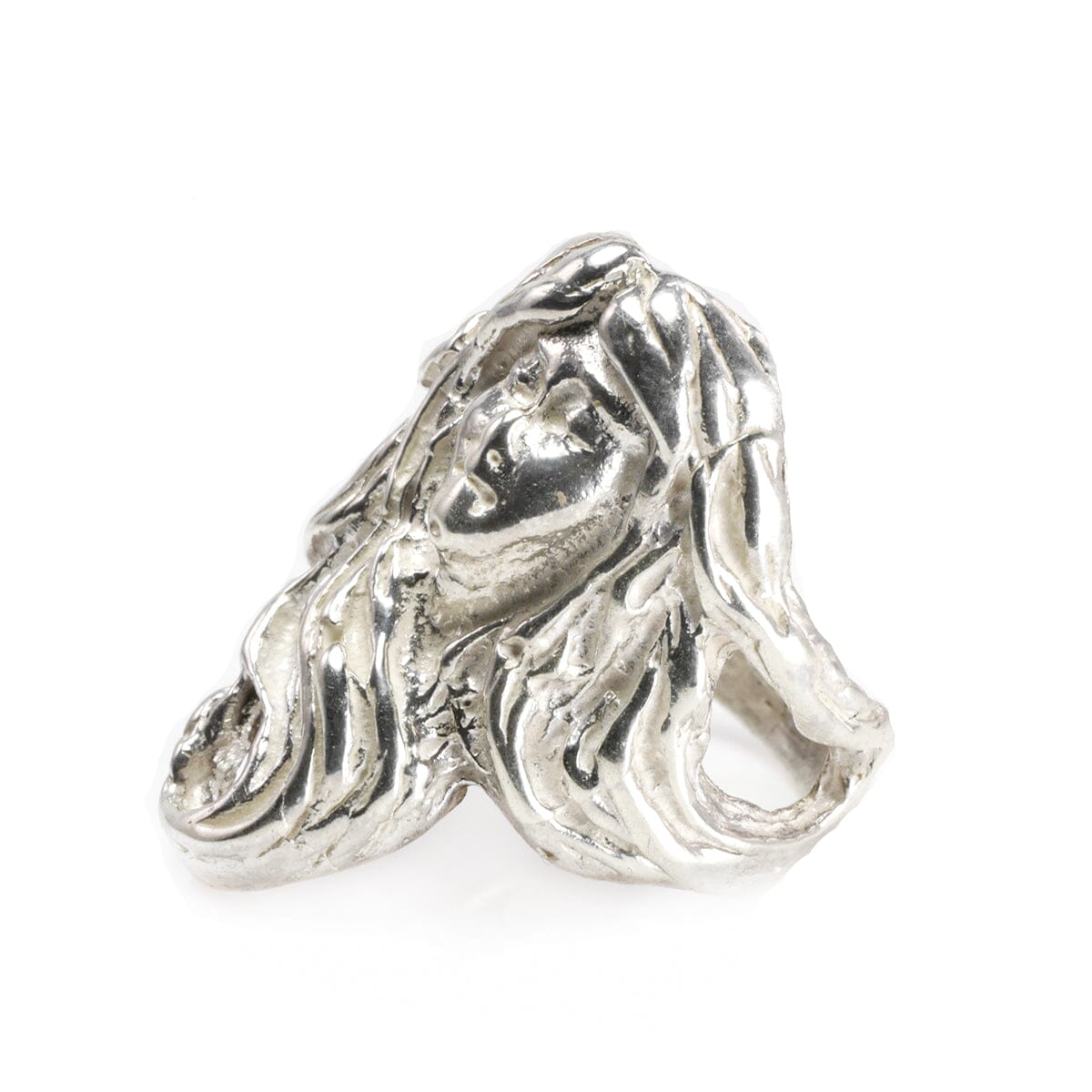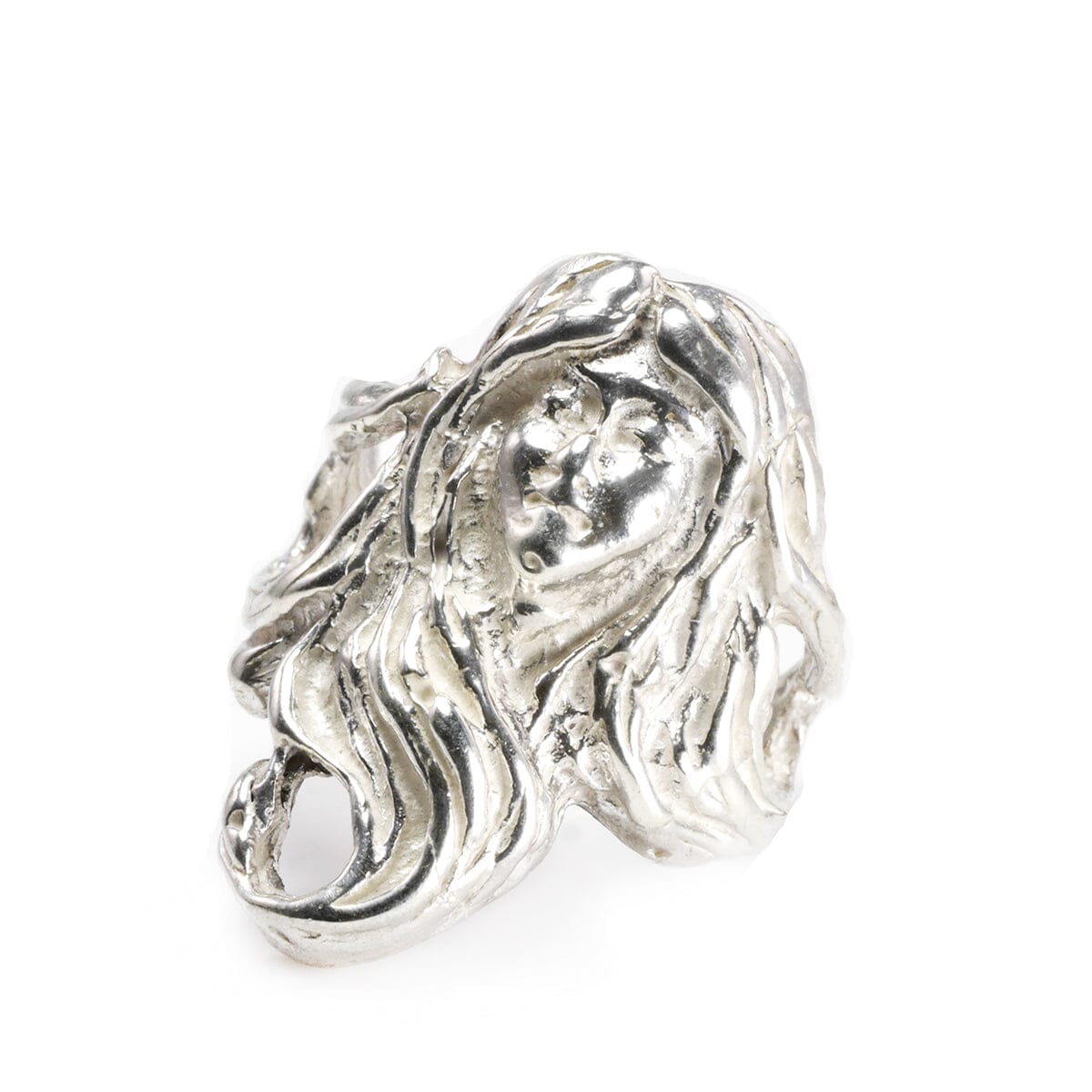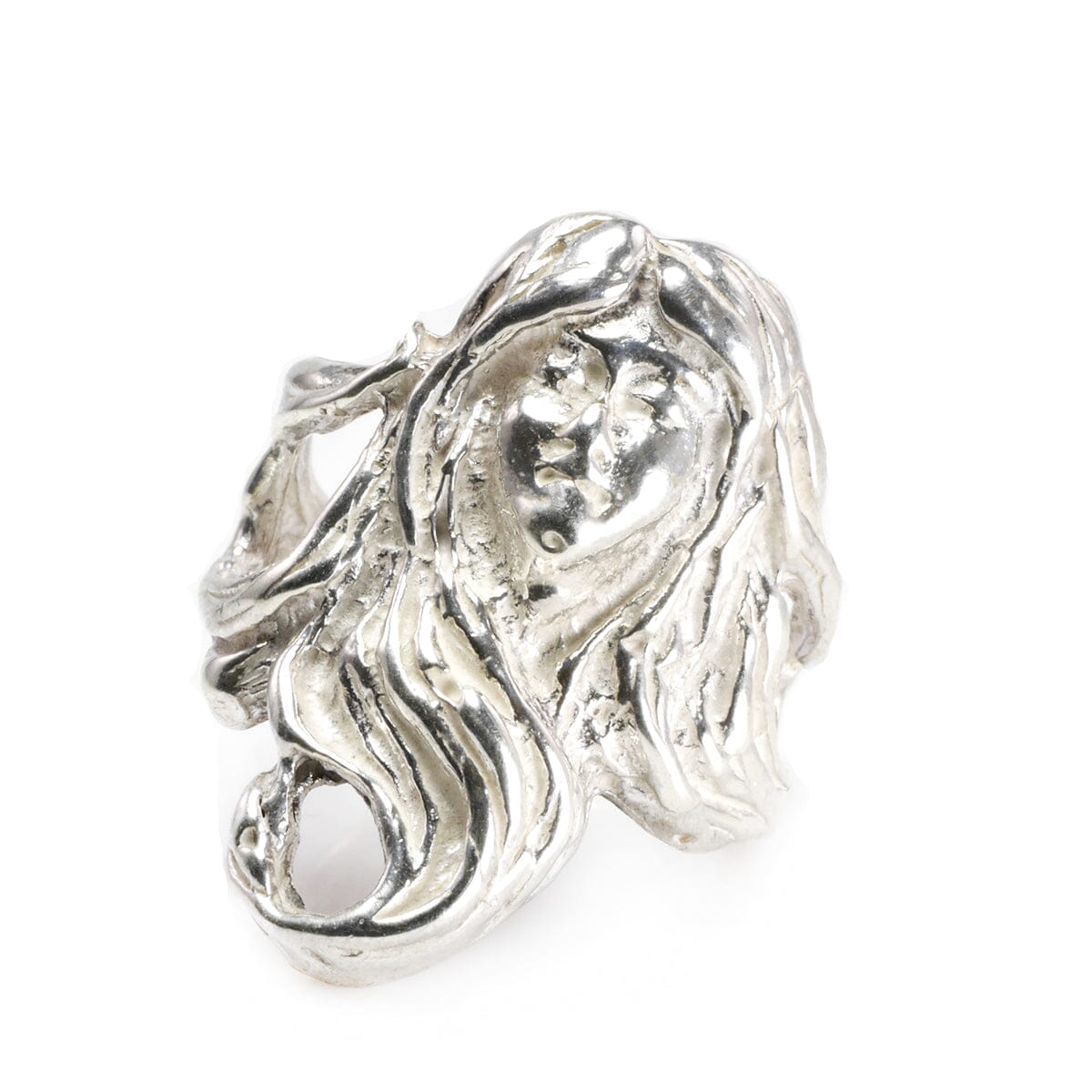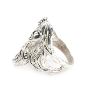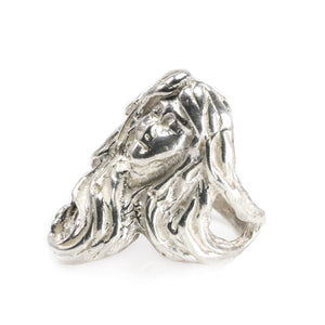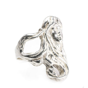 This Handmade Fantasy Silver Ring is beautifully detailed. To clarify we do have more than one of these rings but all are individually listed on our website. This ring features the face of a woman with long flowing hair. It feels distinctly fantasy inspired and is very artistically executed.