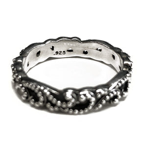 This Lois Hill Silver Granulated Oxidized Ring is a striking, heavily textured ring, ideal for everyday wear. It's slender enough to be incorporated into a multi-ring look and its size also makes it ideal for anyone looking for a thumb ring.