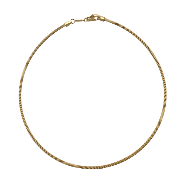 Our new cable choker is available in gold & silver and is 2.3mm. It comes in two lengths - 16" & 18". The silver is 925 sterling and the gold is 24K gold vermeil.