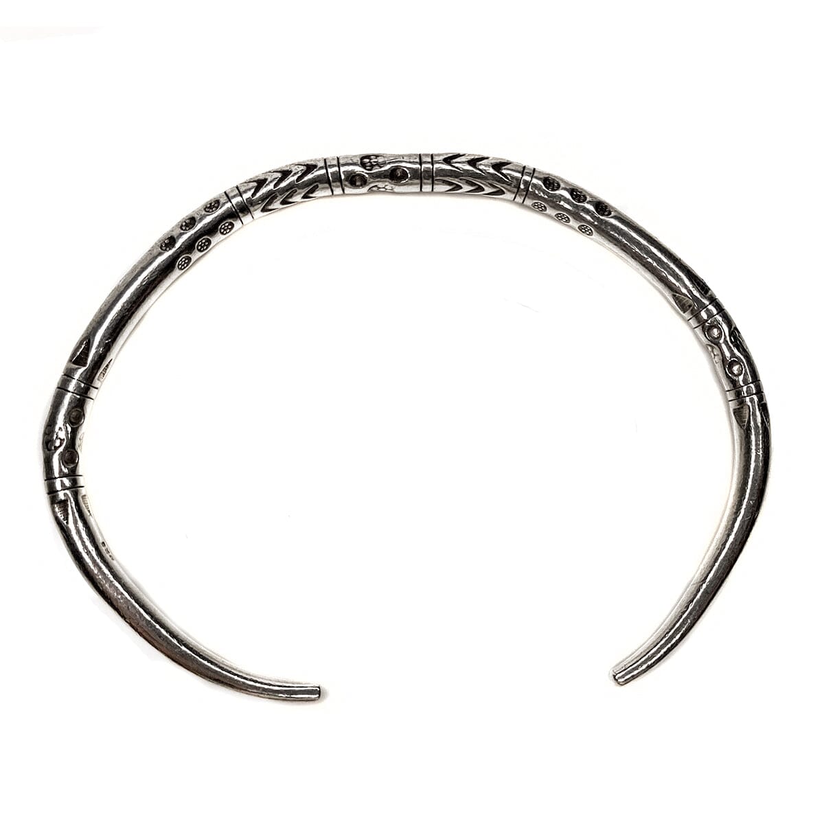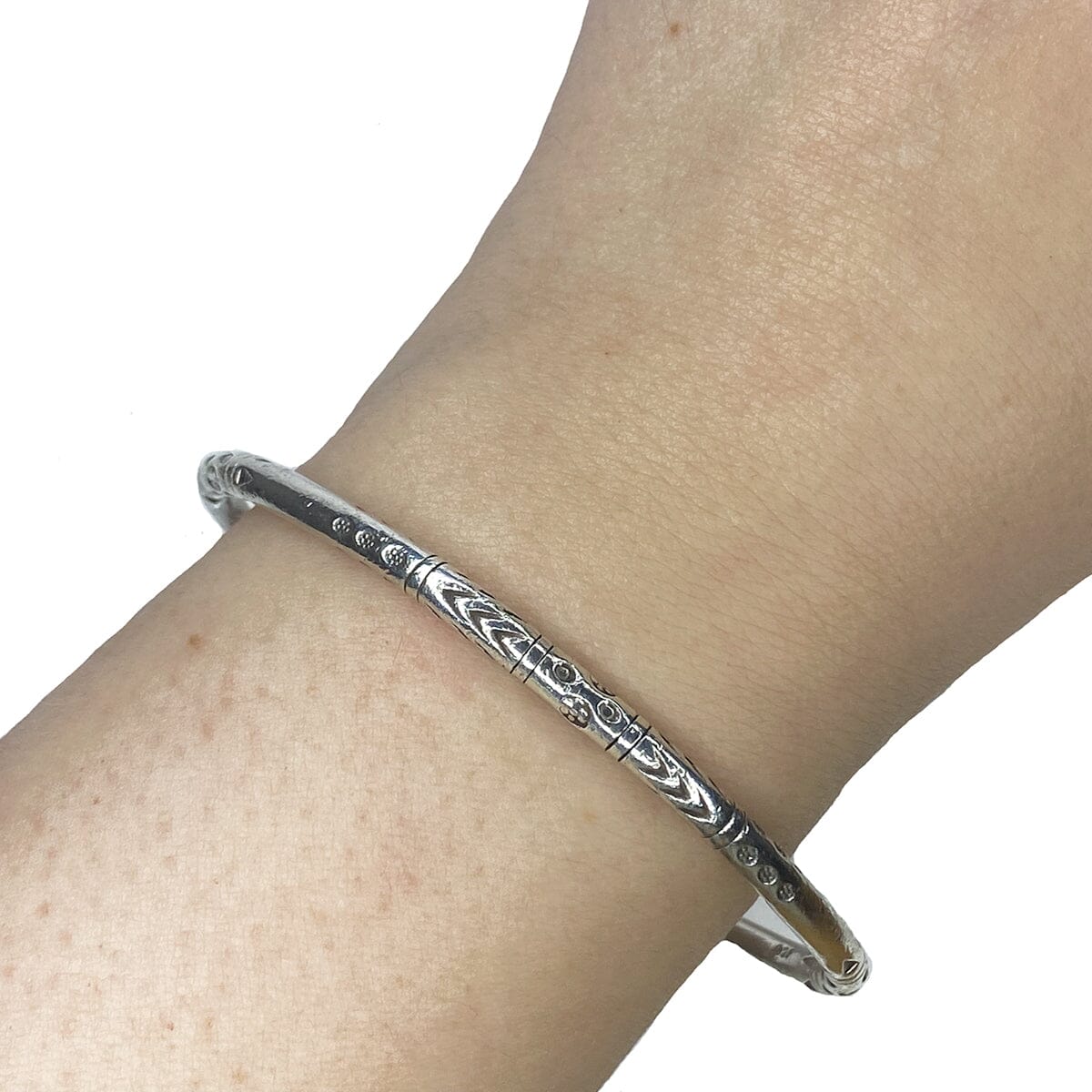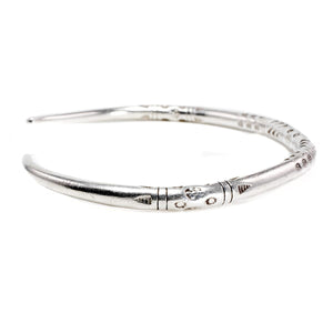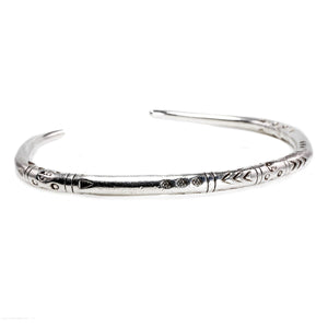 This Native American Handmade Silver Bangle is an intricately detailed, traditional bangle, ideal for everyday wear. This bangle is relatively narrow so it could be worn with other pieces.