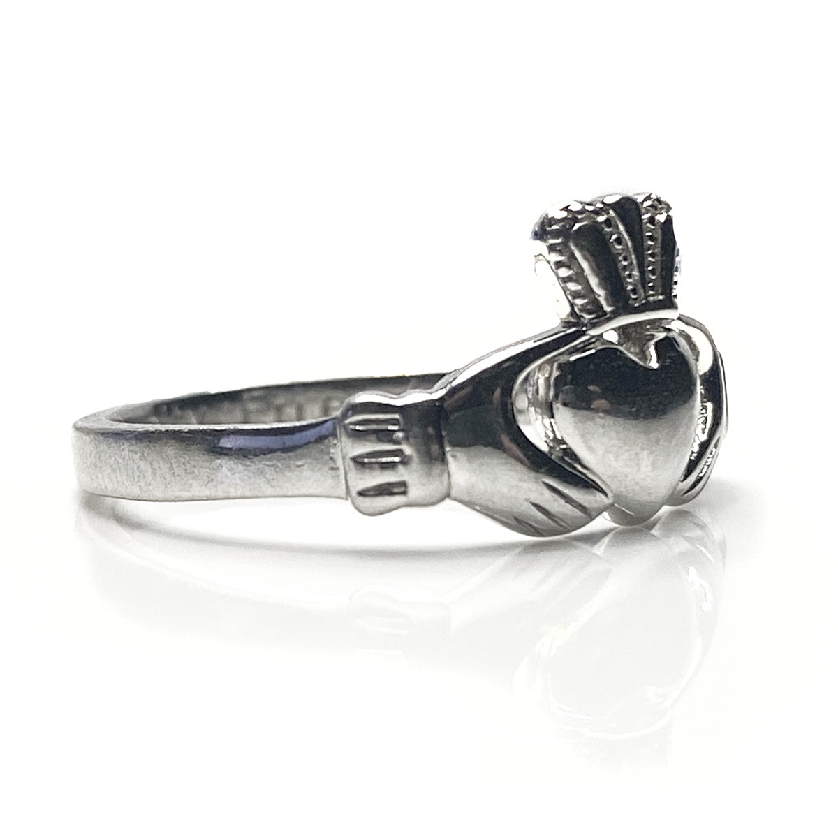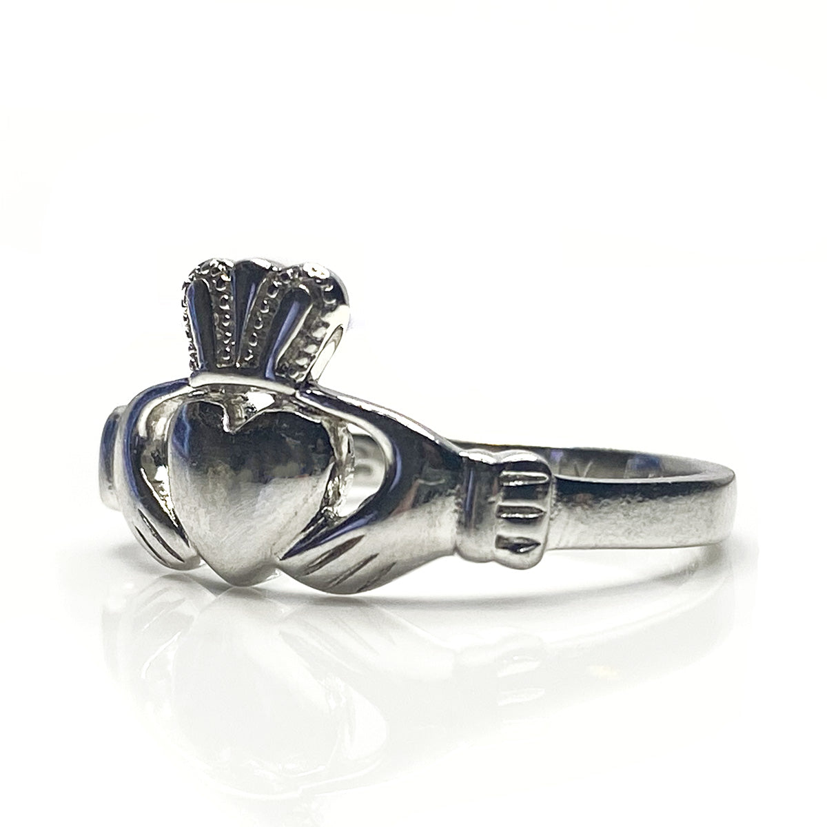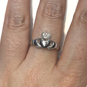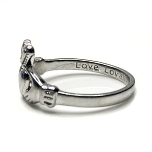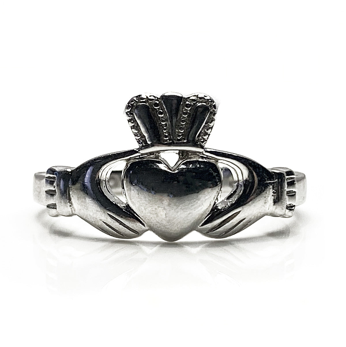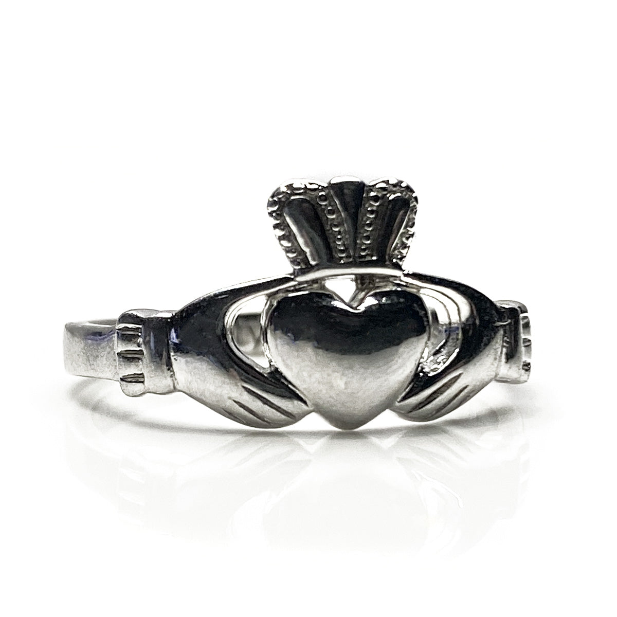 This Silver Claddagh Ring is an everyday essential and would make a heartfelt gift. The Claddagh is seeped in history and is worn to represent love, friendship and loyalty. As an extra attention to detail, this ring is engraved on the inside of the band with precisely those three words.