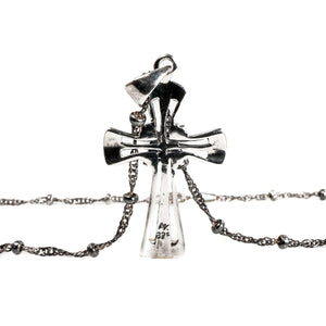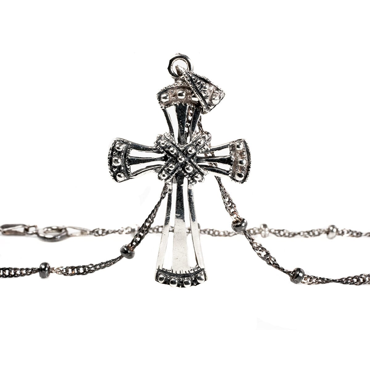 This Silver Cross Necklace is such a beautiful piece for those wishing to proudly display their faith. A lovely contrast is created between the simple, high shine body of the cross and the textured silver accents that frame all of the points and then the very center. It makes it a very eye catching piece. Further to that the chain is heavily oxidized creating even more contrast. This piece is ready to wear (or ready to gift,) including both the chain and the pendant.