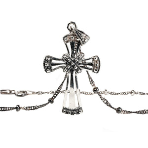 The necklace itself measures 20 inches in length with a chain width of 2.8 mm. The pendant measures 42.7 mm in length including the hanger. Excluding the hanger the cross alone measures 32 mm in length by 21.6 mm in width. The chain and pendant combined weigh 7.8 grams.