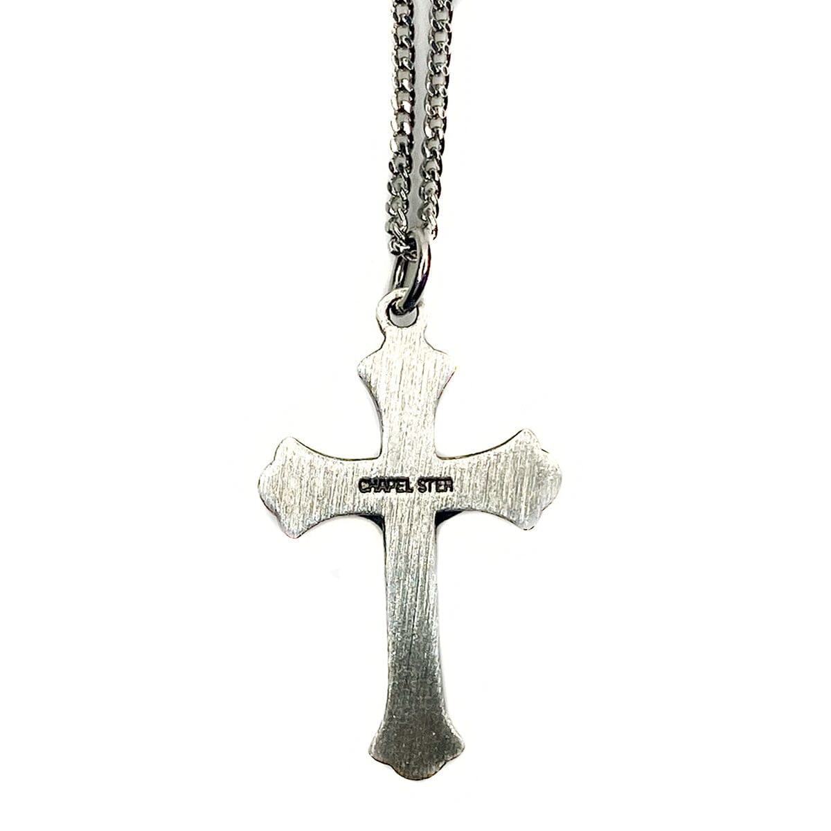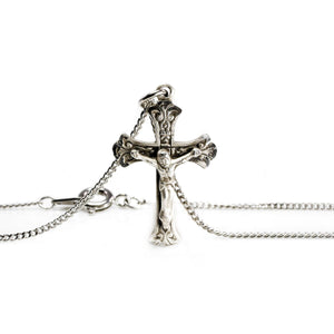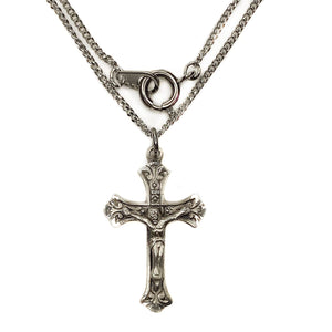 This Silver Crucifix Necklace is just lovely. Not only is there beautiful detailing on the crucifix, but you'll notice ornate scroll details on the cross itself. This gives it a slight feminine feel.
