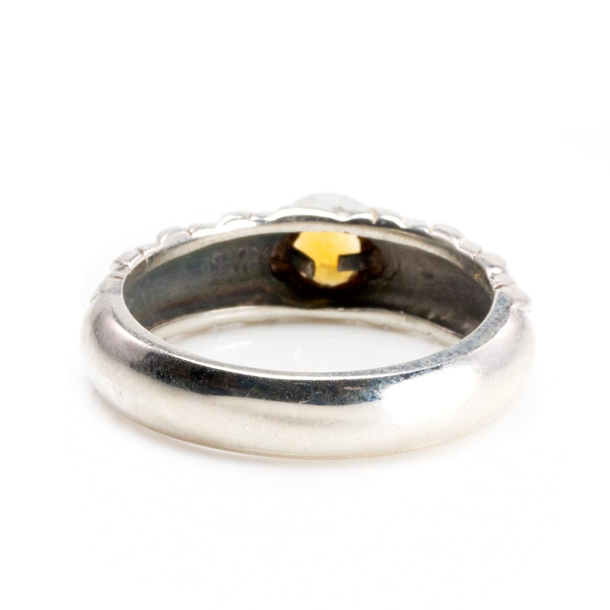 At its center is an amber colored cubic zirconia which fits the Celtic vibe just beautifully. It's a very nice everyday ring.