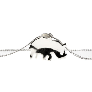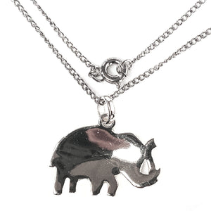 The necklace measures 18 inches in length. Meanwhile the pendant measures 20.4 mm in height including the hanger and 21.7 mm in width (measured from trunk to tail.) Excluding the hanger it measures 13.7 mm in height. The chain width is 1.3 mm and combined the chain and pendant weigh 3.5 grams.