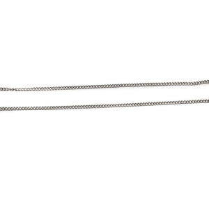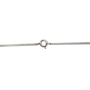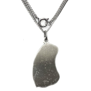 The necklace measures 18 inches in length, making it one of the most popular lengths. The chain is 1.5 mm in its width. The pendant measures 32 mm (1.2 inches) in height, including the hanger. It measures 15 mm at its widest point. At the thickest point, the metal is 4 mm. The pendant is hallmarked on the back and the chain is also hallmarked on the clasp. The necklace and pendant together weigh 9.9 grams.