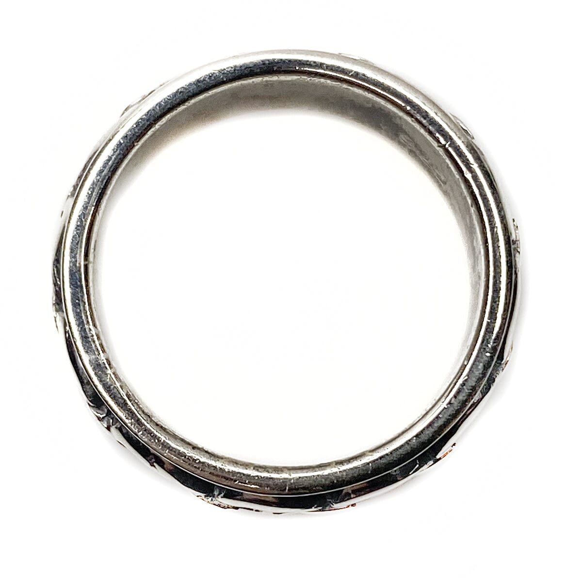 The ring is a size 9 3/4s. It measures 8.1 mm or 0.3 inches in height as it sits on the finger so again it's a nice, chunky ring. The metal thickness is 2 mm. This ring is hallmarked sterling silver on the inside of the band and it does show some oxidizaition and wear on the inside. Obviously this isn't visible when worn. The ring weighs an impressing 7.8 grams.