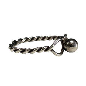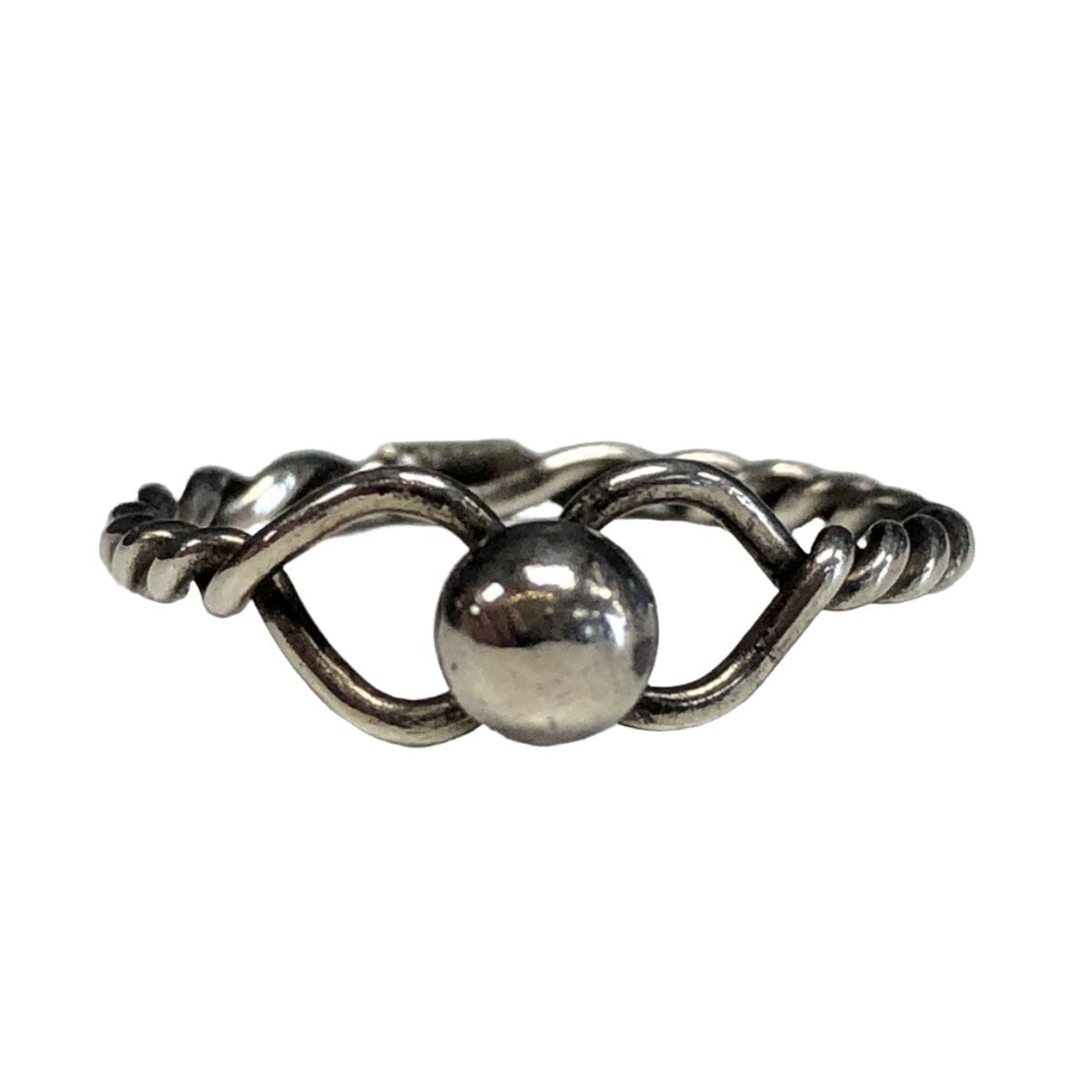 This Twisted Silver Ring feels contemporary and edgy for everyday wear. The twisted silver band offers a lot of texture and contrast thanks to the oxidization on the band. This sits in stark contrast to the polished silver sphere at the front. It's an ideal everyday piece.